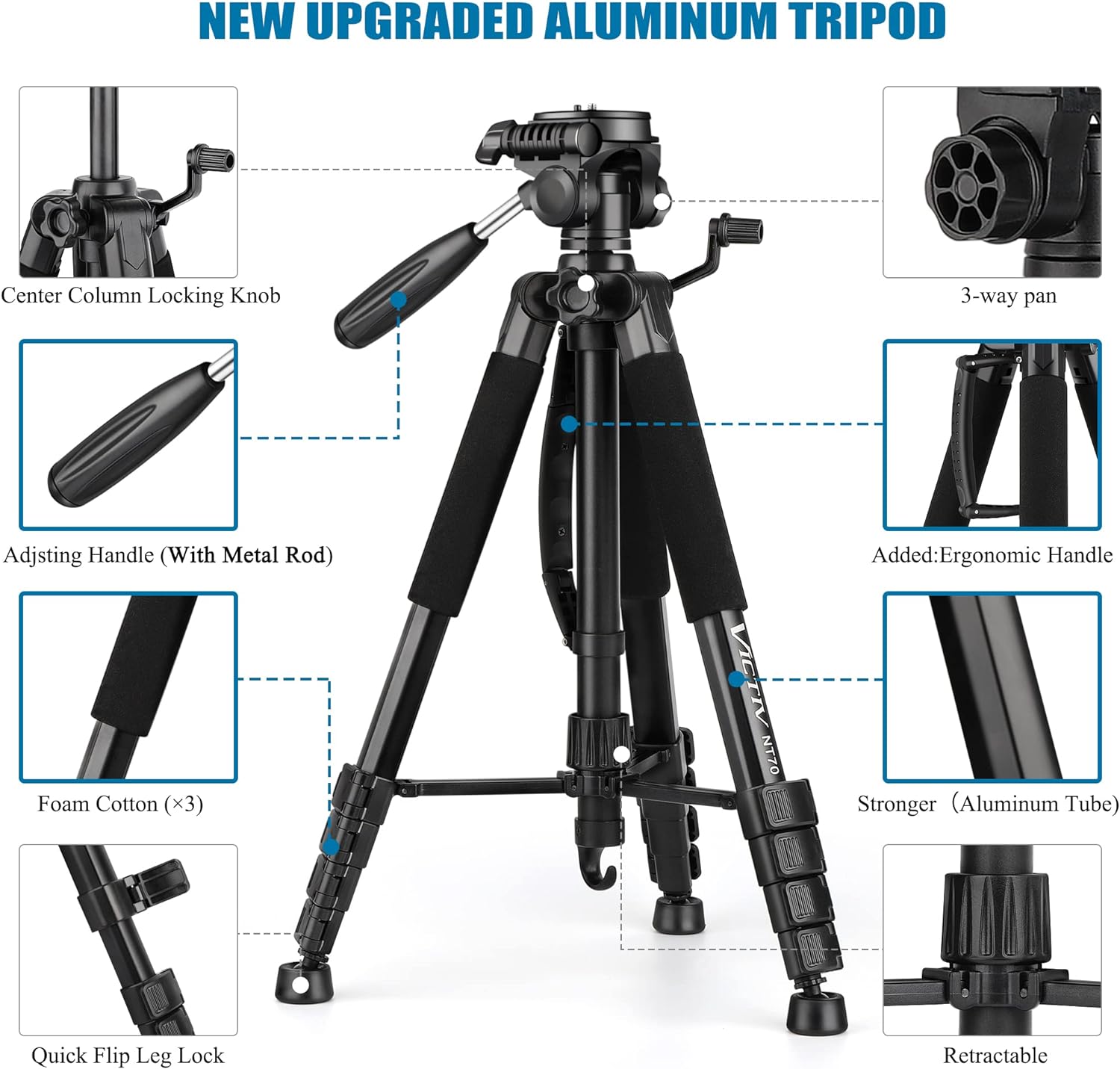 VICTIV 74” Camera Tripod, Tripod for Camera and Phone, Aluminum Heavy Duty Tripod Stand for Canon Nikon with Carry Bag and Phone Holder